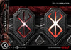 The helmet’s textured surface, the massive wings shaded with purples and greens, and the pale highlights on his cheeks – every detail has been painted to replicate Miura-sensei’s delicate yet powerful art style. The eye of The Beherit is made of clear parts, giving the iris an eerie vibrancy, while the sacrificial brand embedded in the sinister base glows ominously thanks to an internal LED, heightening the sense of despair in a way only a three-dimensional piece can.