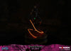 The concept for this statue is inspired by the boss fight against Avarice, a member of the Seven Deadly Sins. Fury is shown standing victorious as if she just defeated him, brandishing the Talisman of Sin on her left hand to trap him in it. She is wielding her whip, Barbs of Scorn, in her right hand. The statue meticulously captures Fury's dark, rugged, and intricately designed armor, along with the Bridge Stone strapped to her belt. Additionally, Barbs of Scorn and the Bridge Stone include a glow-in-the-dark feature. The base showcases Avarice's sack of treasures, while the underbase is inspired by the museum-like borders of the area, adorned with gold.