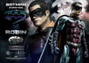 Overcoming the grief of losing his family and the drive for revenge, Dick Grayson finds both justice and a new name: Robin. The suit Alfred prepared for him has been faithfully painted in the colors that glowed in the film’s dark setting. The red and green, symbolizing youthful passion, have been meticulously crafted through layers of fine adjustments. Intricate spray techniques highlight contrasts, creating a three-dimensional effect that makes him appear to rise from the shadows. The "R" emblem on his chest, the sculpted muscles, and the vibrant yellow of his synthetic leather cape all showcase incredible detail. And, of course, his unmasked face faithfully captures the features of Chris O'Donnell. Relive the unforgettable colors and design that remain etched in fans' memories alongside his dazzling action scenes.