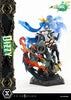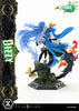Born between a human and a Gear, the compassionate half-Gear takes to the battlefield to protect the ones she loves. Her graceful form, captured dramatically in 1/4 scale, is accompanied by her loyal wings: Necro and Undine. The trio is arranged in a dynamic diagonal composition, emphasizing a moment of unity and motion.
