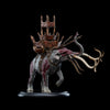Making its mighty entrance into our range of miniature statues, the awe-inspiring mûmak looms large, despite its small stature. Crafted with unrelenting precision and deep reverence for the varied creatures of Middle-earth, our artists have captured every detail: from the cracked leather of its hide to the twisted ropes straining in vain to harness its power.