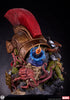 This fully sculpted diorama highlights the courage of this band of outcasts in their heroic fight to liberate the planet Sakaar. A beautifully detailed portrait of the Hulk anchors this piece. He is depicted in a battle-worn Roman inspired helm and is gnashing his teeth in an expression of rage and determination. Surrounding the Hulk are recreations of scenes from the fan-favorite storyline including the Hulk battling the arachnid like “Devil Corkers”, the shuttle in which Hulk crashed on Sakaar passing through a wormhole and an elaborate scene of Hulk and his Warbound companions leading the people of Sakaar to freedom.