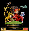 This statue pays homage to Franquin, it takes up the protagonists created by himself namely Spirou, Spip, Marsupilami and even Gaston through the comics that they read.