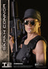Sarah is presented combat ready in her Tactical outfit holding the assault rifle used for the assassination of Miles Dyson. Her costume features high detailed accessories sculpted to the finest detail. Extra ordinary realistic textures complete her stunning presentation. A removable cigarette completes the exact detail scene of the movie.